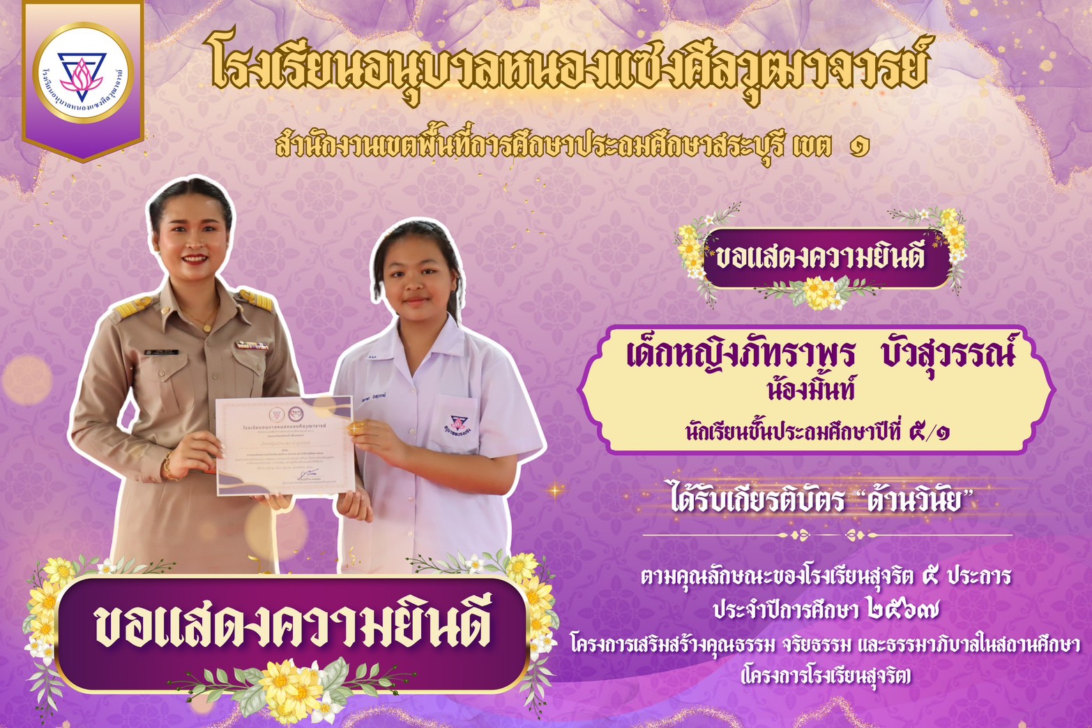 ชื่อผลงาน : รางวัลชนะเลิศ อันดับที่ 1 บริษัทสร้างการดี “น้ำพริกหมูสับ” ผลการแข่งขันกิจกรรมแลกเปลี่ยนเรียนรู้ ถอดบทเรียน และนวัตกรรมโครงการโรงเรียนสุจริต