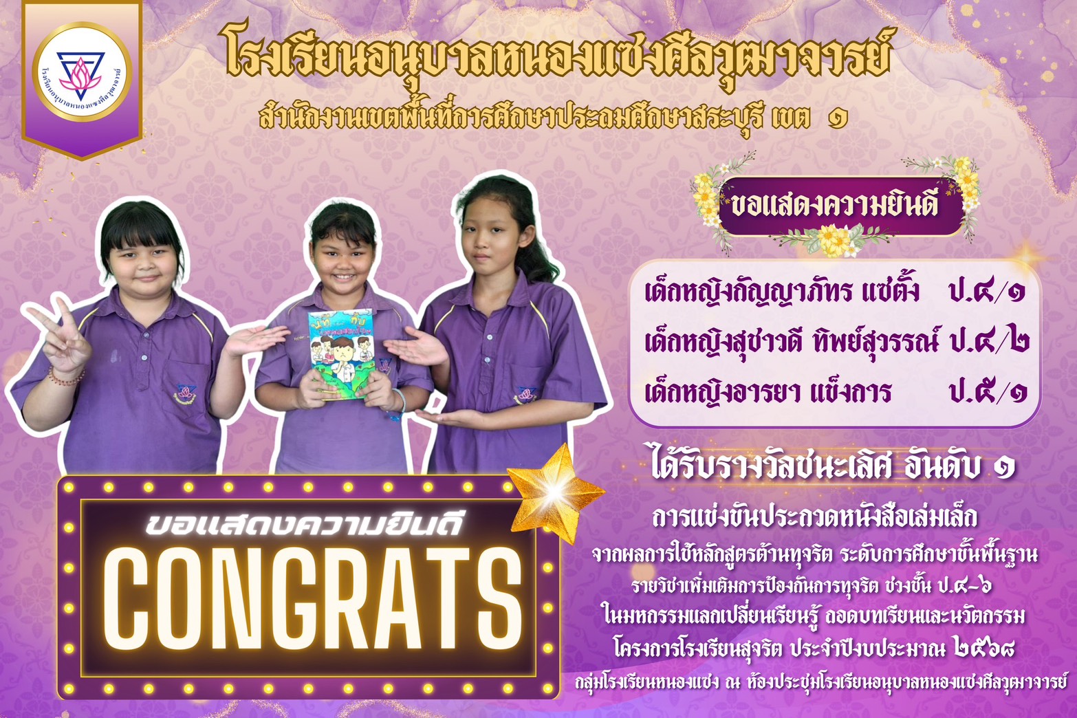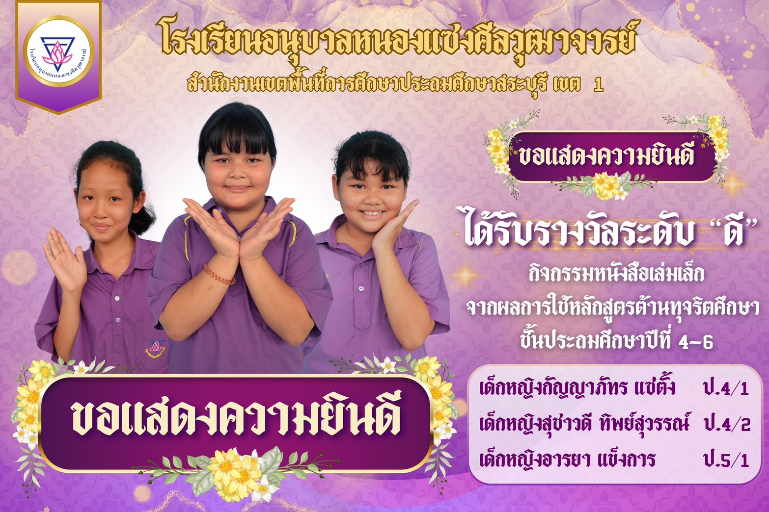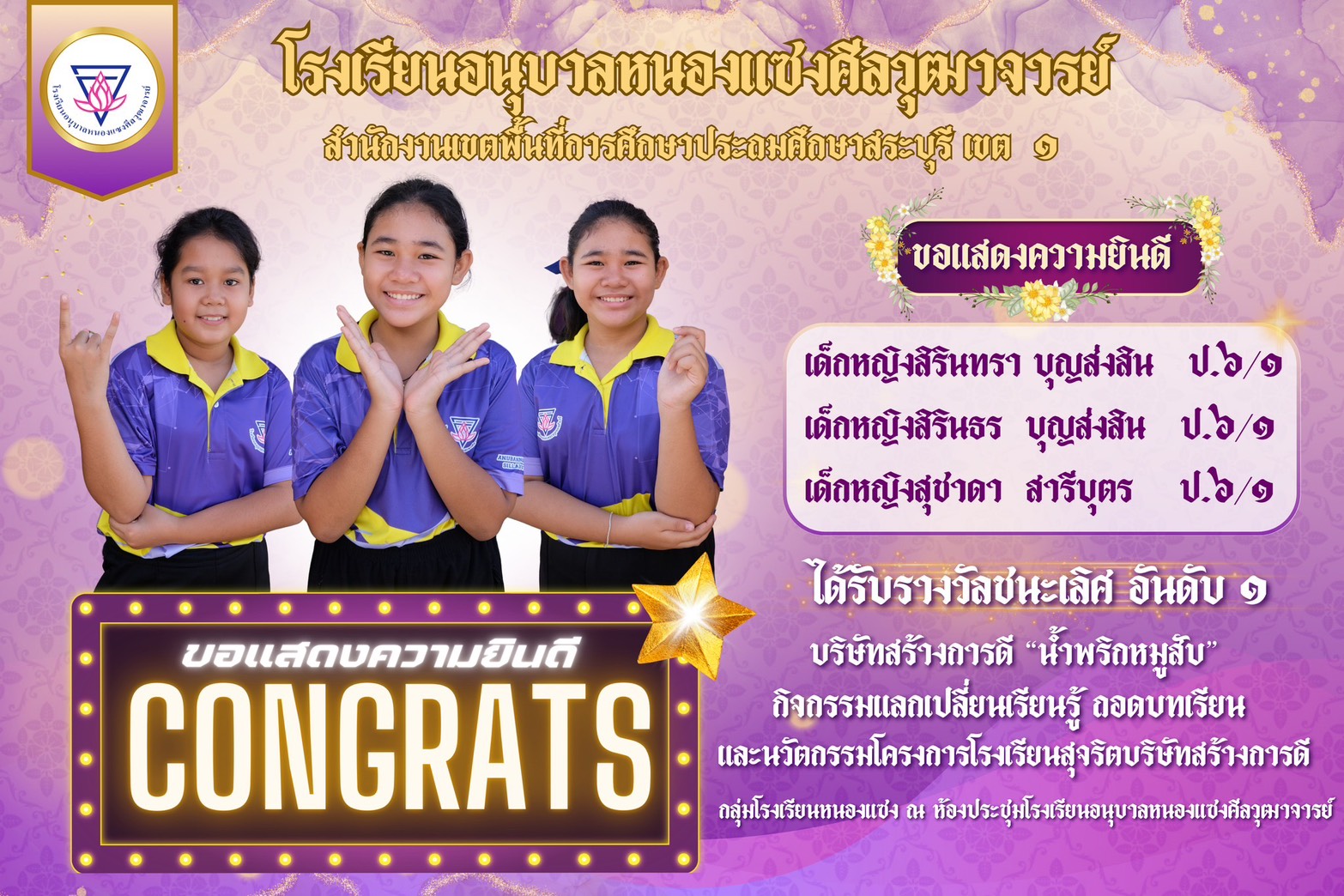 ชื่อนักเรียน : เด็กหญิงสิรินทรา บุญส่งสิน , เด็กหญิงสิรินธร บุญส่งสิน , เด็กหญิงสุชาดา สารีบุตร