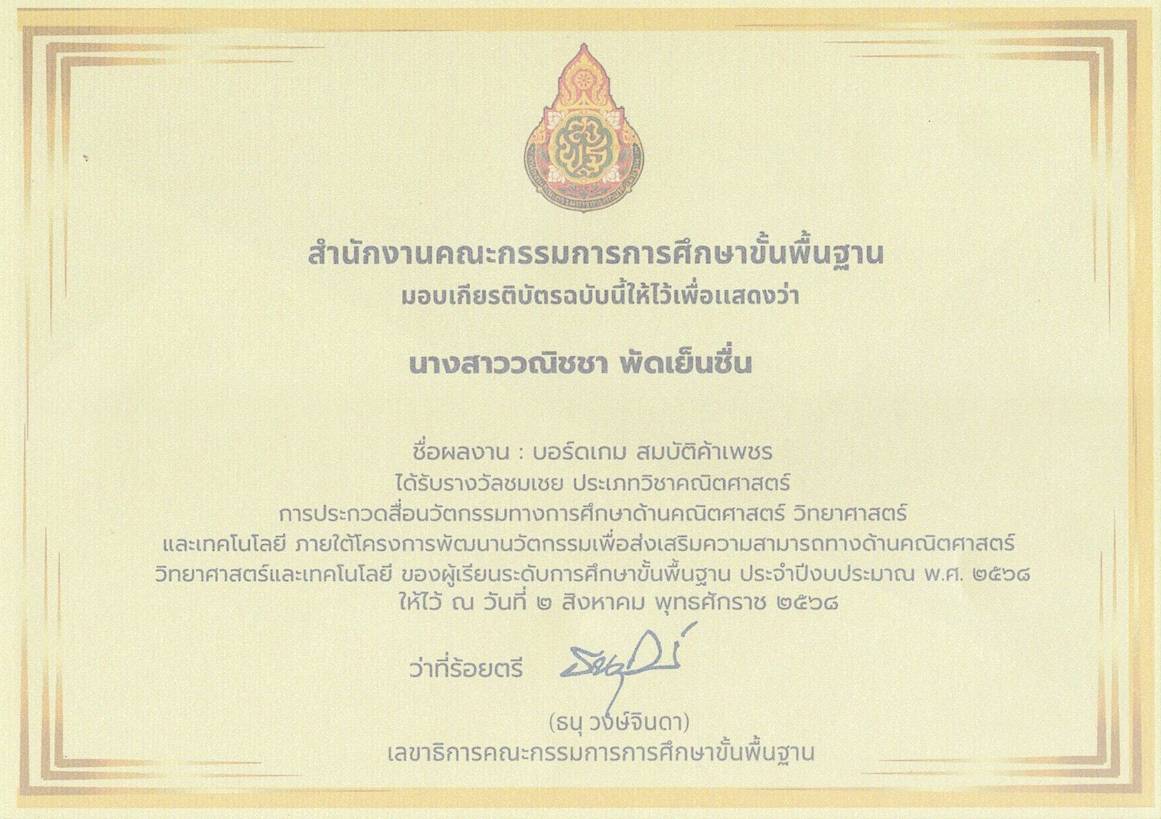 รางวัลระดับ ทองแดง การแข่งขันการทำหนังสือเล่มเล็ก ระดับชั้น ป.4-ป.6 งานศิลปหัตถกรรมนักเรียน ระดับเขตพื้นที่การศึกษา ครั้งที่ 73 ปีการศึกษา 2568 |