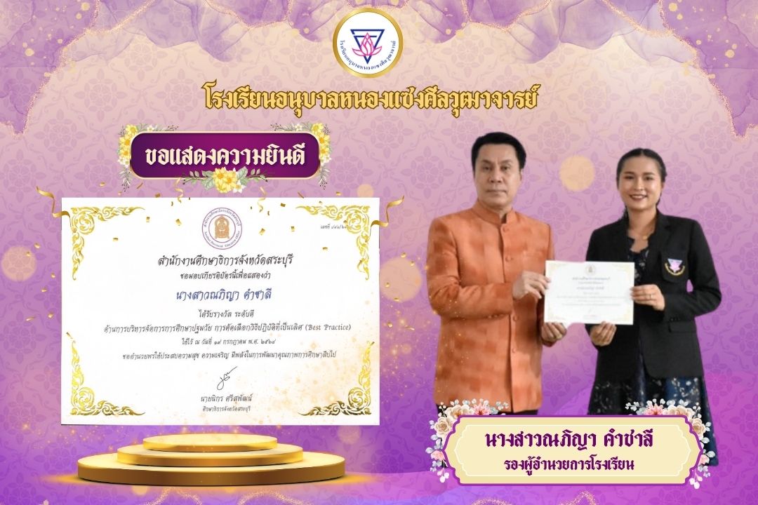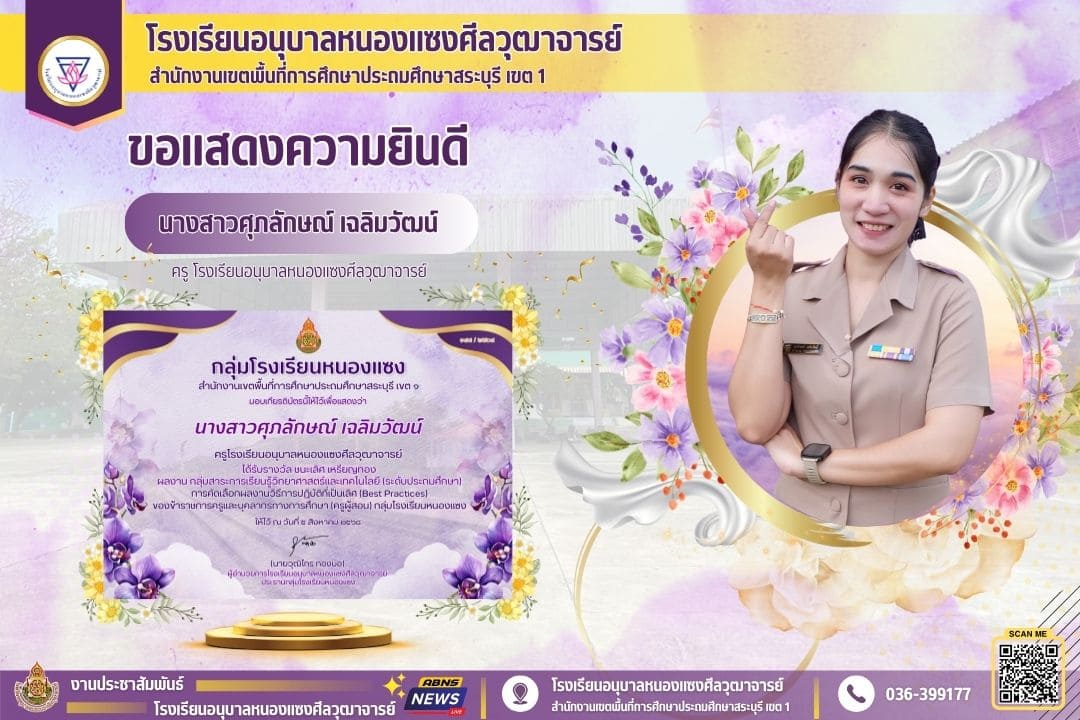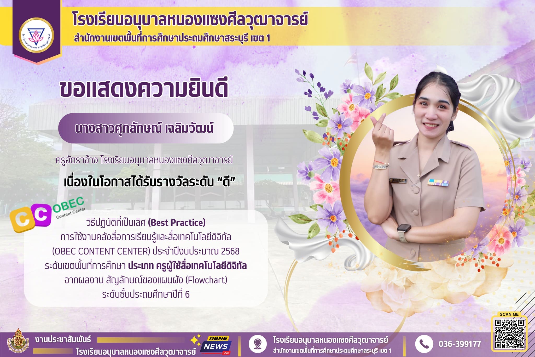 ได้รับรางวัลระดับ “ดีเยี่ยม” วิธีปฏิบัติที่เป็นเลิศ (Best Practice) ด้านการใช้งานคลังสื่อการเรียนรู้และสื่อเทคโนโลยีดิจิทัล (OBEC Content Center)ประจำปีงบประมาณ 2568 |